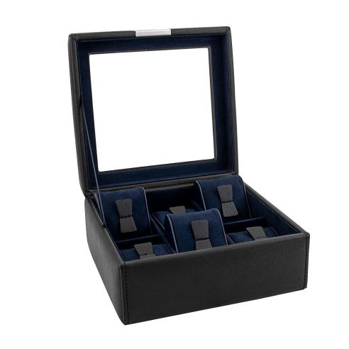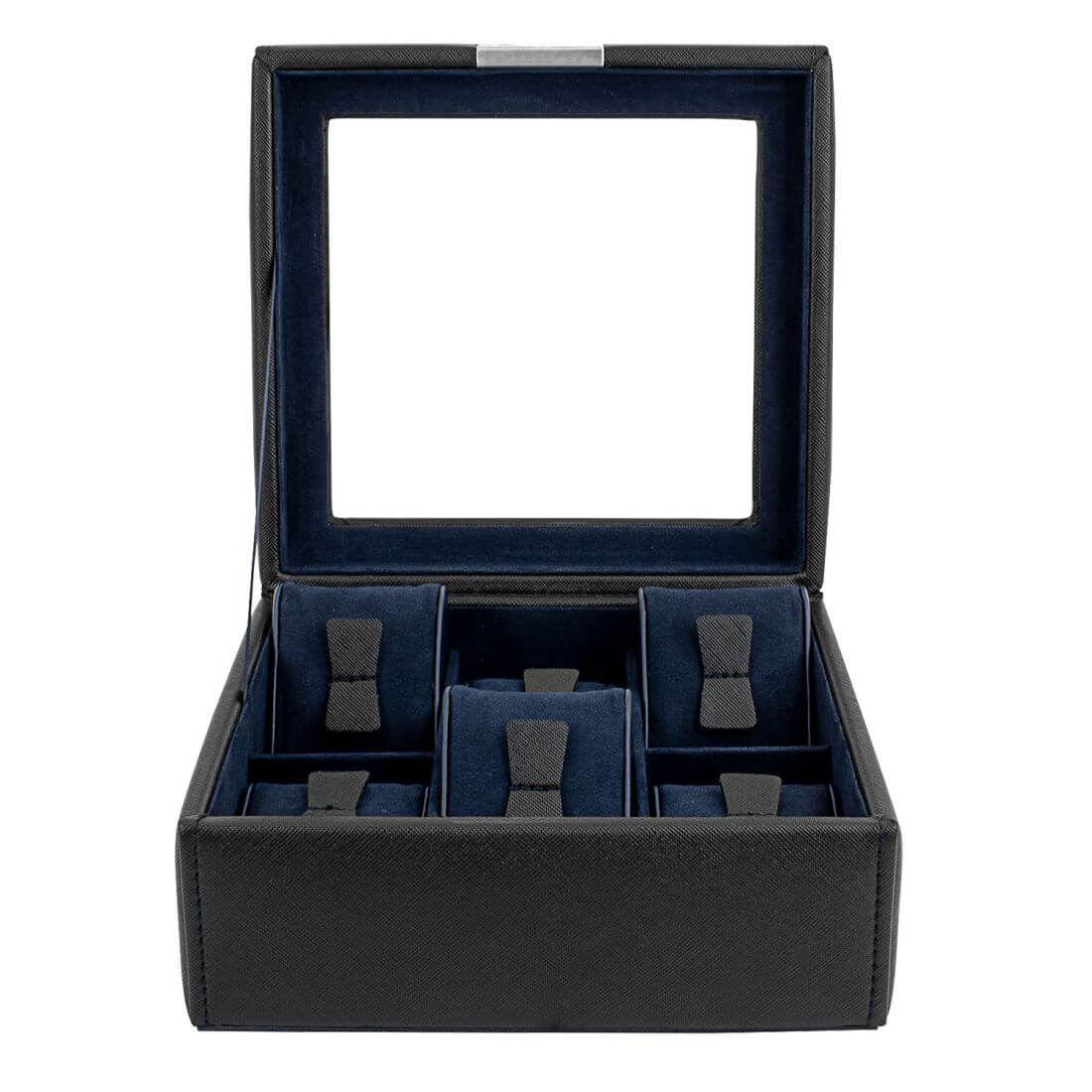Ecrin 6 montres, Bond V2, noir, intérieur bleu, vitré